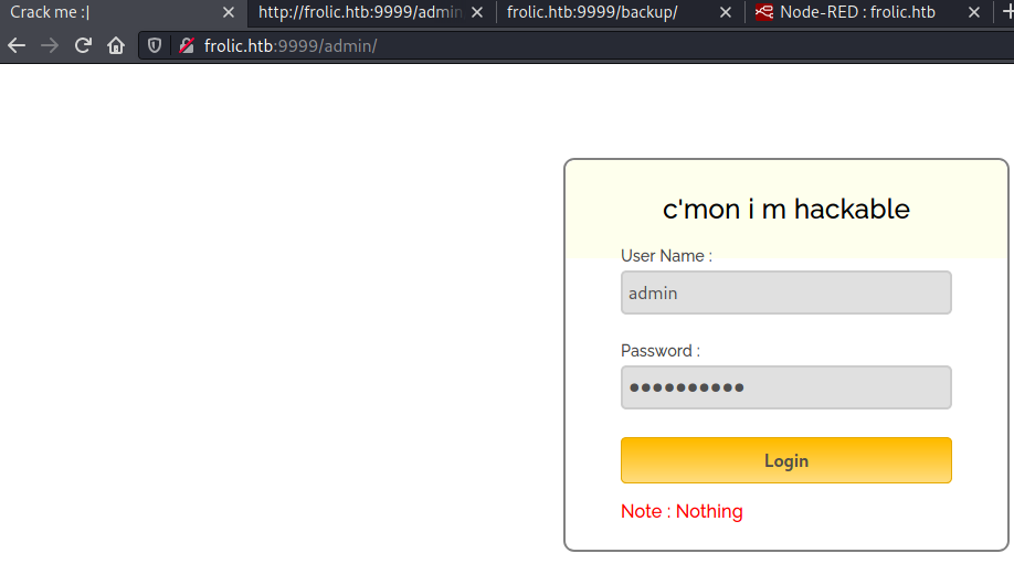 These credentials didn't work with Node-RED. Let's check the /admin/ path, it has a login page too.