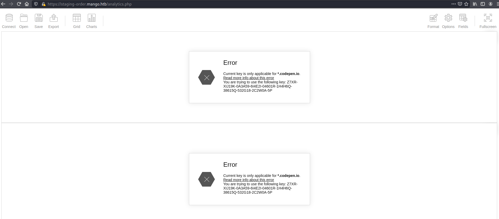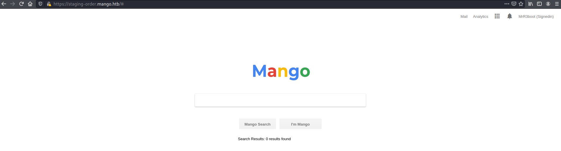 Next I revisited port 80, this time through https://staging-order.mango.htb and got a login page