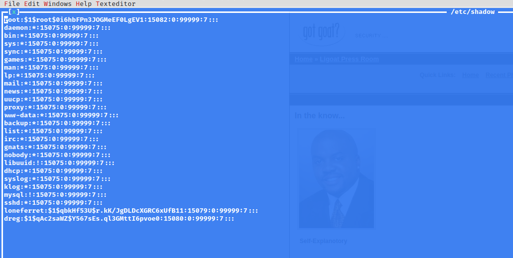 loneferret@Kioptrix3:~$ sudo ht /etc/shadow