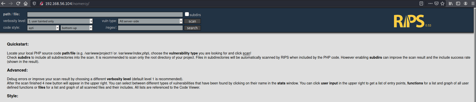 This version of RIPS was vulnerable to local file inclusion https://www.exploit-db.com/exploits/18660